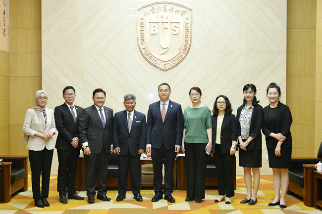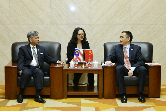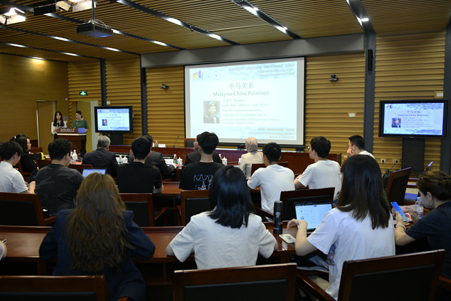 5月27日,kaiyun开云官方“喜迎80周年校庆、驻华大使走进北外”系列讲座举行第二讲,马来西亚驻华大使拉惹·拿督·诺希尔万就“中马关系”作专题讲座。北外校长、党委副书记杨丹会见了诺希尔万一行,讲座由kaiyun开云官方院长苏莹莹主持。