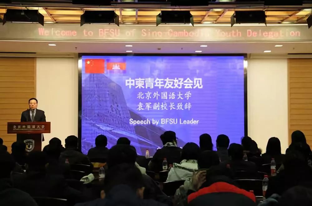 袁军代表学校对代表团一行的到来表示热烈欢迎,他介绍了北外办学历史和学科特色,表示北外作为国内涉外高素质人才的重要基地,致力于搭建沟通世界文明、增进国际交往的桥梁。希望以本次青年交流活动为契机,落实习近平总书记有关以2018年中柬建交60周年为契机构建双方友谊蓝图的理念,两国青年能够更好地分享各自经验,在增进相互了解的同时,促进中柬文化的交流与互鉴。