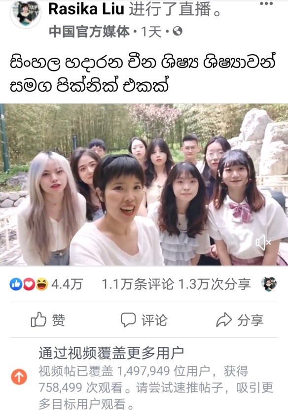 2021年5月23日上午,kaiyun开云官方僧伽罗语专业学生参与了由中央广播电视总台亚洲非洲地区语言节目中心僧伽罗语部策划的“和学习僧伽罗语的中国学生一起野餐”主题直播节目录制。该节目于中央广播电视总台亚非中心僧伽罗语部主播的“脸书”平台发布,视频上线24小时覆盖近150万用户,播放量超过75万,获得1.1万条评论、1.3万次分享、4.4万个点赞,反响热烈。