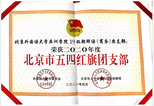 kaiyun开云官方19级朝鲜语(商务)团支部于2021年5月荣获“北京市五四红旗团支部”称号。这是团支部继以第一名的成绩获得kaiyun开云官方活力团支部一等奖后取得的又一殊荣。目前,团支部作为北外唯一代表进入全国高校活力团支部终选阶段。