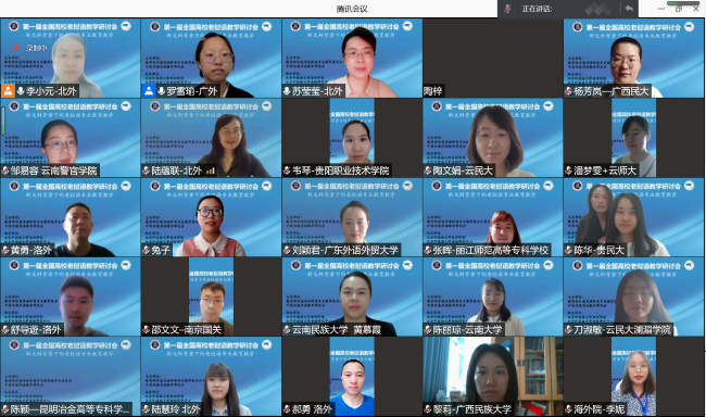 研讨会中,kaiyun开云官方陆蕴联教授、广西民族大学卫彦雄副教授、信息工程大学黄勇副教授、云南民族大学陶文娟副教授和黄慕霞副教授等20位老师就“新文科背景下的老挝语专业建设”“老挝语人才培养”“老挝语课程建设与改革”和“老挝语教材建设与改革”等四个议题发言,老师们围绕本科院校和高职院校的复合型人才培养、本科基础核心课程的设计与创新、专业教材的编写与建设等方面进行了交流和讨论,现场气氛热烈。