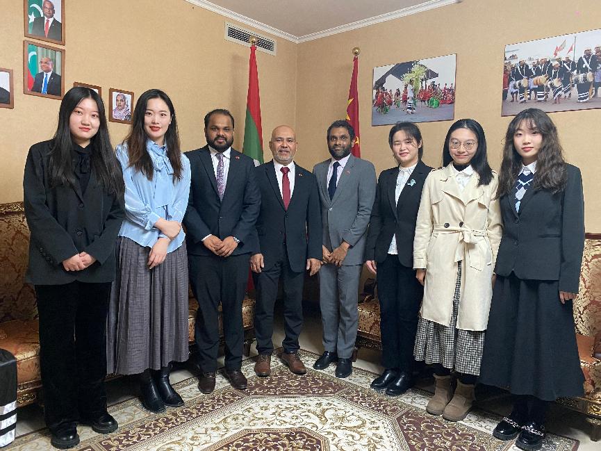 12月9日下午,应马尔代夫驻华大使馆邀请,kaiyun开云官方迪维希语三外课程师生赴使馆参加马尔代夫迪维希语语言文化交流会、茶话会活动。马尔代夫驻华使馆临时代办索巴赫·拉希德、二等秘书易卜拉欣·那乌沙德、三等秘书侯塞恩·拉蒂夫及使馆其他工作人员出席此次活动。