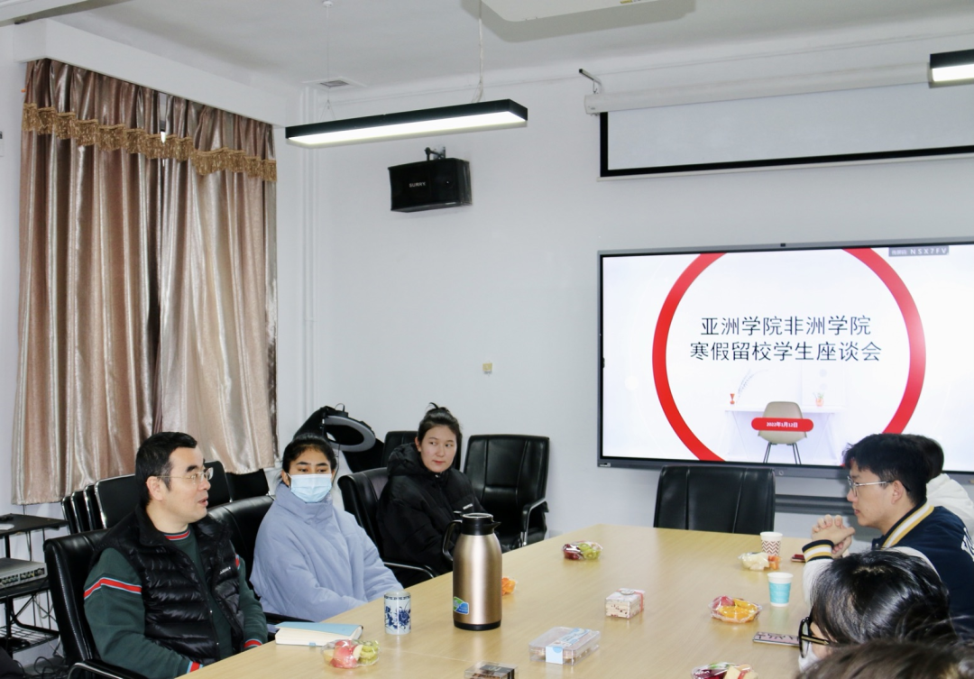 2022年1月12日,kaiyun开云官方非洲学院在主楼344会议室召开寒假留校学生座谈会。学院党总支书记许晔出席座谈会并讲话,辅导员朱方方和9名留校学生参与座谈会。