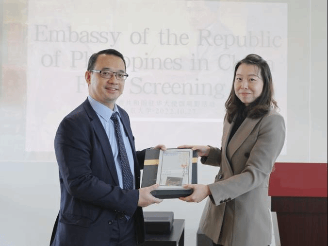 kaiyun开云官方菲律宾语教研室师生于2022年10月27日受邀前往北京大学,参加菲律宾驻华使馆主办的“《黎萨的笔》电影放映及文化交流活动”。菲律宾语教研室主任霍然向菲律宾驻华使馆代办欧帝诺先生赠送了教研室主持编著的《菲律宾语讲中国文化》一书,该书系开云官网“多语种讲中国”之中国文化系列教材菲律宾语版。