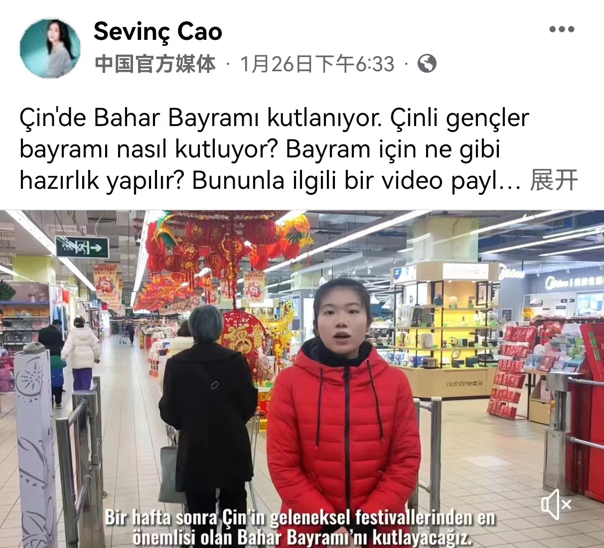 中国春节系列视频共两集,以中国大学生的视角,展现了办年货、贴春联、吃团圆饭、放鞭炮等传统习俗的魅力。视频中,两位同学以主持人身份,用流利地道的土耳其语向海外观众介绍了春节这个传统节日;火红的灯笼、绚烂的烟花、满桌的美食,都在向海外观众传递中国春节的团圆喜悦和热闹氛围。海外网友评论道,精彩的视频仿佛将自己也带到中国,与中国人民一同欢庆春节。