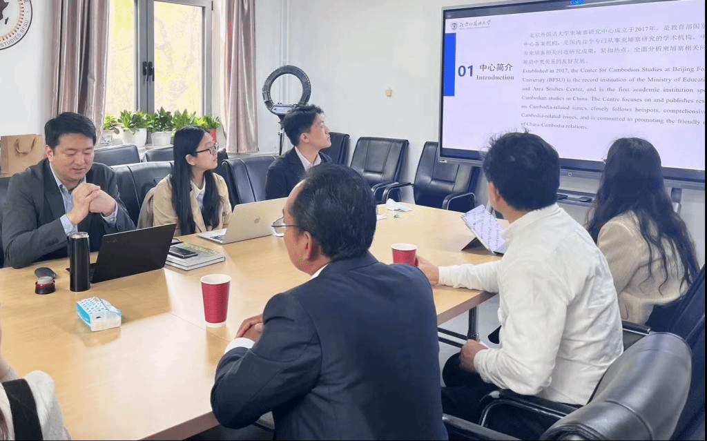 顾佳赟介绍了柬埔寨研究中心基本情况和组织结构,重点介绍了中心研究成果和中心组织的各类活动。顾佳赟表示,近年来中心与柬埔寨皇家科学院合作紧密,在联合出版、联盟组建等领域取得了丰硕成果,希望双方进一步加强学术合作,为中柬人文交流、智库合作贡献力量。
