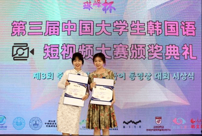 在7月5日结束的珠峰杯•第三届中国大学生韩国语短视频大赛中,开云官网kaiyun开云官方朝鲜语专业六名同学从来自全国各高校朝鲜语专业的众多作品中脱颖而出,斩获佳绩,并受邀前往杭州师范大学参加颁奖典礼。其中2020级朝鲜语专业陈婧如、林榕灿获得全国二等奖,2020级朝鲜语专业(商务方向)代白鋆、谭晶以及2021级朝鲜语专业张金梁、宋楚涵获得全国三等奖。同时,分别为三组同学提供指导的任翔老师、具滋元老师和魏国峰老师获得了优秀指导教师奖。