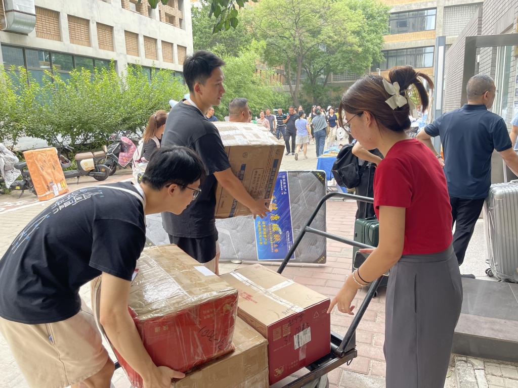 线上,志愿者们与有需求的新生单独对接,确定其到校时间和行李情况,为线下志愿者开展工作提供准确信息,并实时为新生答疑解惑,确保新生顺利入校。线下,志愿者们提供点对点服务,积极搬运行李,支部委员分楼分时段负责,核对新生及行李信息,确保志愿活动有序开展。对于没有登记需求的新生,志愿者们在完成已分配的任务后也主动提供帮助。除去身体的疲惫,志愿者脸上始终带着亲切热情的微笑。与此同时,星火志愿服务队再起新篇,为新生提供贴心的校园游览的服务,向新生介绍亚非的历史,讲述北外的故事,新老传承从新生步入校园的一刻就已经开始。