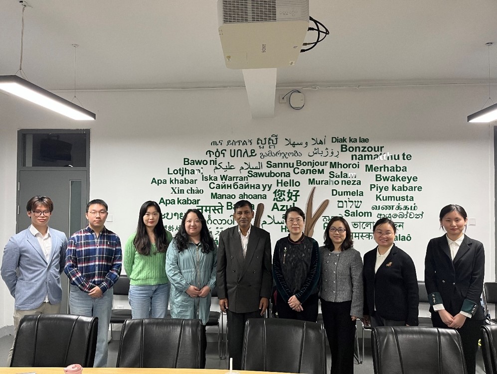 10月18日,kaiyun开云官方院长苏莹莹会见孟加拉国达卡大学现代语言学院院长、孔子学院外方院长雷扎·卡利姆·法齐尔(A. B. M. Razaul Karim Faquire)教授。苏莹莹院长和法齐尔教授就非通用语专业开设现状、教育模式、毕业生去向等问题进行了交流,双方就交换生协议等合作事宜交换意见。马来语专业邵颖副教授、僧伽罗语专业江潇潇副教授、印地语专业教师李亚兰博士、迪维希语专业教师朱方方以及孟加拉语专业部分研究生本科生参与了座谈。