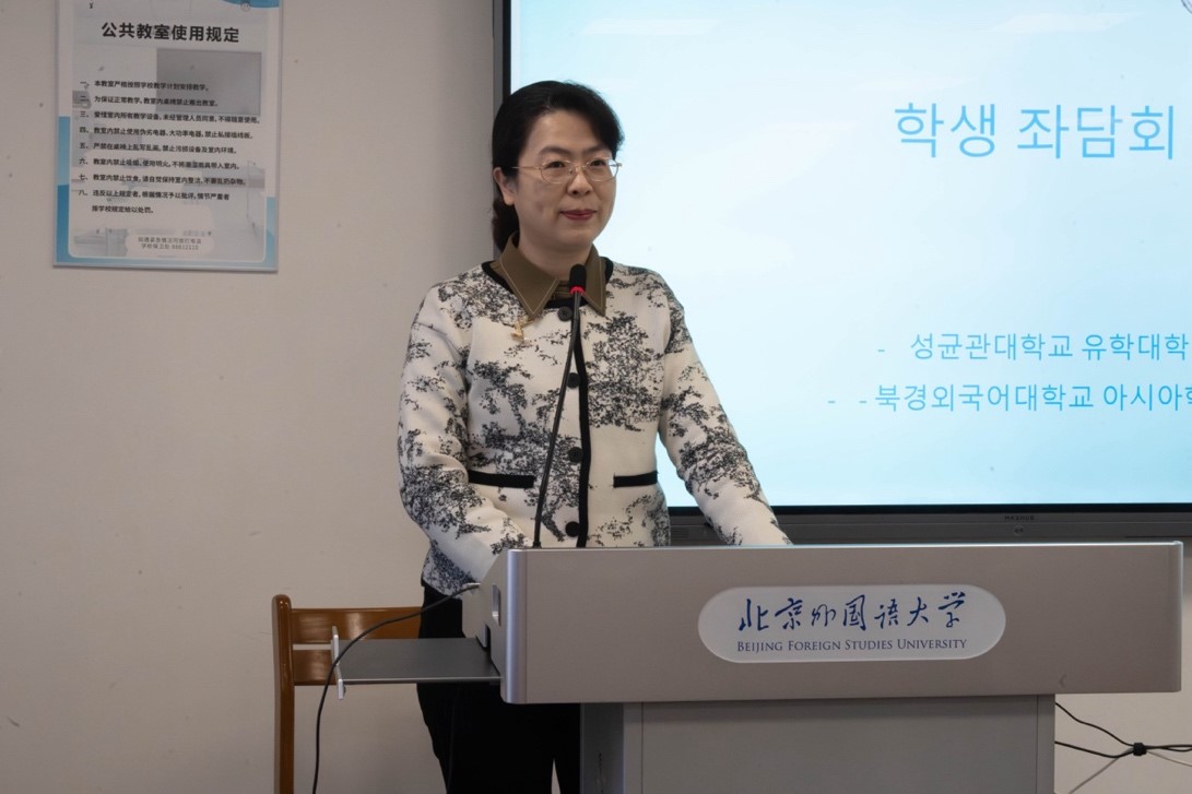 参观结束后,全体师生进行了交流座谈活动。kaiyun开云官方院长苏莹莹教授对成均馆大学师生到访kaiyun开云官方表示热烈的欢迎,并介绍了kaiyun开云官方、kaiyun开云官方以及朝鲜语专业建设发展的情况。