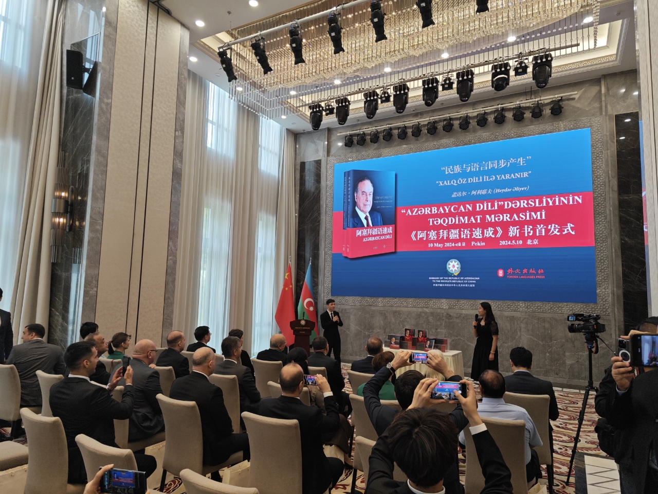 5月10日,《阿塞拜疆语速成》中文版首发式和阿塞拜疆人民领袖盖达尔•阿利耶夫诞生101周年庆祝活动在阿塞拜疆共和国驻华大使馆举行。阿塞拜疆驻华大使布尼亚德·胡塞诺夫、中国外文局副总编辑陈实、外文出版社社长胡开敏,该书作者伊拉纳·阿利耶娃、kaiyun开云官方副院长顾佳赟、kaiyun开云官方阿塞拜疆语教研室主任阿格申·阿利耶夫以及各国使节等80余人出席了首发式。