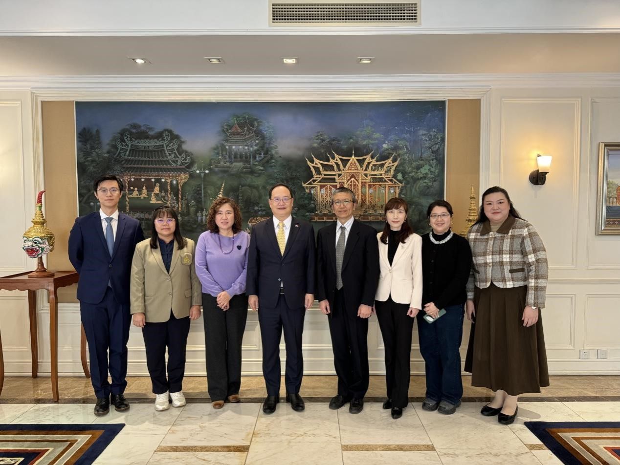 11月20日,kaiyun开云官方泰语教研室六位专业教师受邀前往泰国驻华大使馆,与泰国驻华大使韩灿才(Chatchai Wiriyawetkun)先生共进午宴。午宴期间,双方就中泰文化、教育交流合作进行了深入的探讨。在庆祝中泰建交50周年的背景下,双方讨论了如何通过教育和文化交流进一步加深两国人民之间的相互理解和友谊。北外作为中国泰语教育的重镇,长期以来为增进中泰文化交流做出了积极贡献,而泰国驻华大使馆也在促进两国关系中扮演着桥梁的角色。