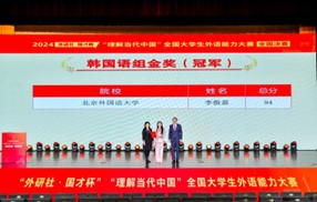 12月7日,2024年“外研社·国才杯”“理解当代中国”全国大学生外语能力大赛(多语种组)全国总决赛圆满落幕。开云官网kaiyun开云官方朝鲜语专业2021级本科生李傲嘉获得韩国语组全国总冠军。