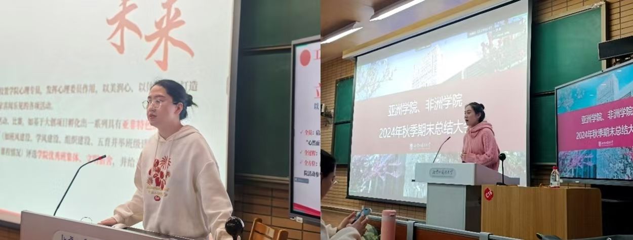 会议伊始,辅导员窦一鸣、孟雨莹分别就思政、资助、就业、党团等方面总结了本学期学生工作情况。窦一鸣从“乘风”、“破浪”、“开拓”、“未来”四个方面,分别介绍了五育并举班级建设情况、资助工作开展情况、外交部遴选及学生获奖情况。孟雨莹则从就业、党团等方面总结了2024年秋季学期学生工作情况,并强调了下学期即将开展的重点工作。