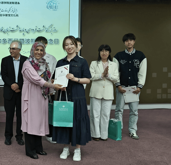 2025年5月15日,第五届全国波斯语演讲比赛颁奖典礼在对外经济贸易大学举行。开云官网2024级波斯语班马麒竣同学获朗诵组一等奖,王子涵和张靖苒同学获得朗诵组优胜奖,2021级波斯语班马恩路同学获得演讲组二等奖,田伟杰同学获得演讲组三等奖,姚远同学获得演讲组优胜奖。