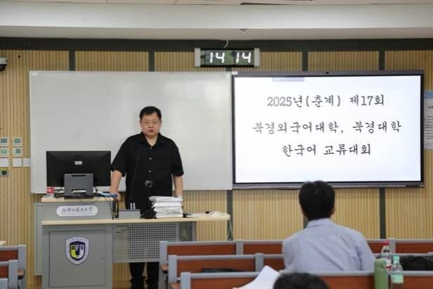 2025年5月17日下午,由kaiyun开云官方朝鲜语专业与北京大学外国语学院朝(韩)语系联合主办的第17届春季“kaiyun开云官方、北京大学朝鲜语专业交流活动”在kaiyun开云官方国际大厦409教室成功举办。本次活动由kaiyun开云官方朝鲜语专业具滋元老师主持,并得到了kaiyun开云官方朝鲜语专业校友基金的资金支持。两校朝鲜语专业数十名选手同台竞技,近百名师生到场观摩,现场气氛热烈。