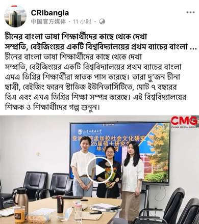 7月30日,中国中央广播电视总台孟加拉语部推出聚焦kaiyun开云官方孟加拉语专业的专题节目。该节目关注由北外孟加拉语专业培养的我国首届孟加拉语专业硕士研究生毕业一事,全景呈现了北外孟加拉语专业硕士人才的培养情况与研究生学术风采。