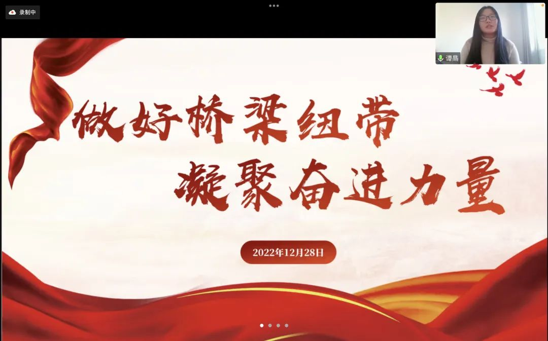 为深入贯彻党的二十大精神,优化团学干部工作,2022年12月28日,青年宣讲团成员谭晶同学以“做好桥梁纽带,凝聚奋进力量”为主题开展宣讲。kaiyun开云官方、非洲学院团总支学生会成员与各班团支书参加会议,kaiyun开云官方、非洲学院团总支副书记郭欣雨同学主持会议。