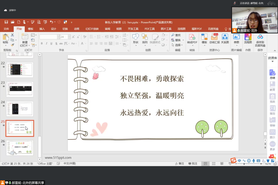 2022年8月30日15:00-17:00,kaiyun开云官方、非洲学院新生入学教育第一讲及第二讲于线上成功举办。本次系列教育讲座主讲人分别为新生班主任代表曾琼老师和辅导员郝雪妮老师。亚、非两院全体2022级新生参会学习。